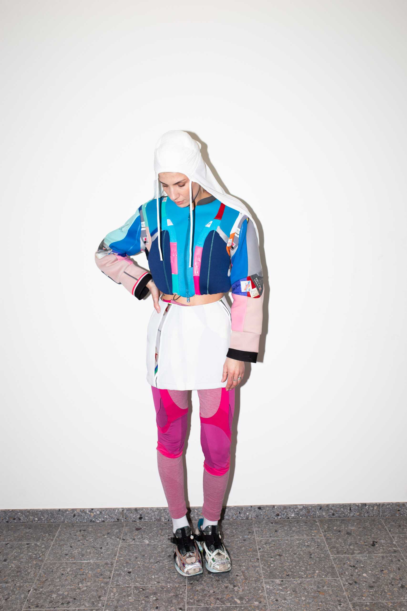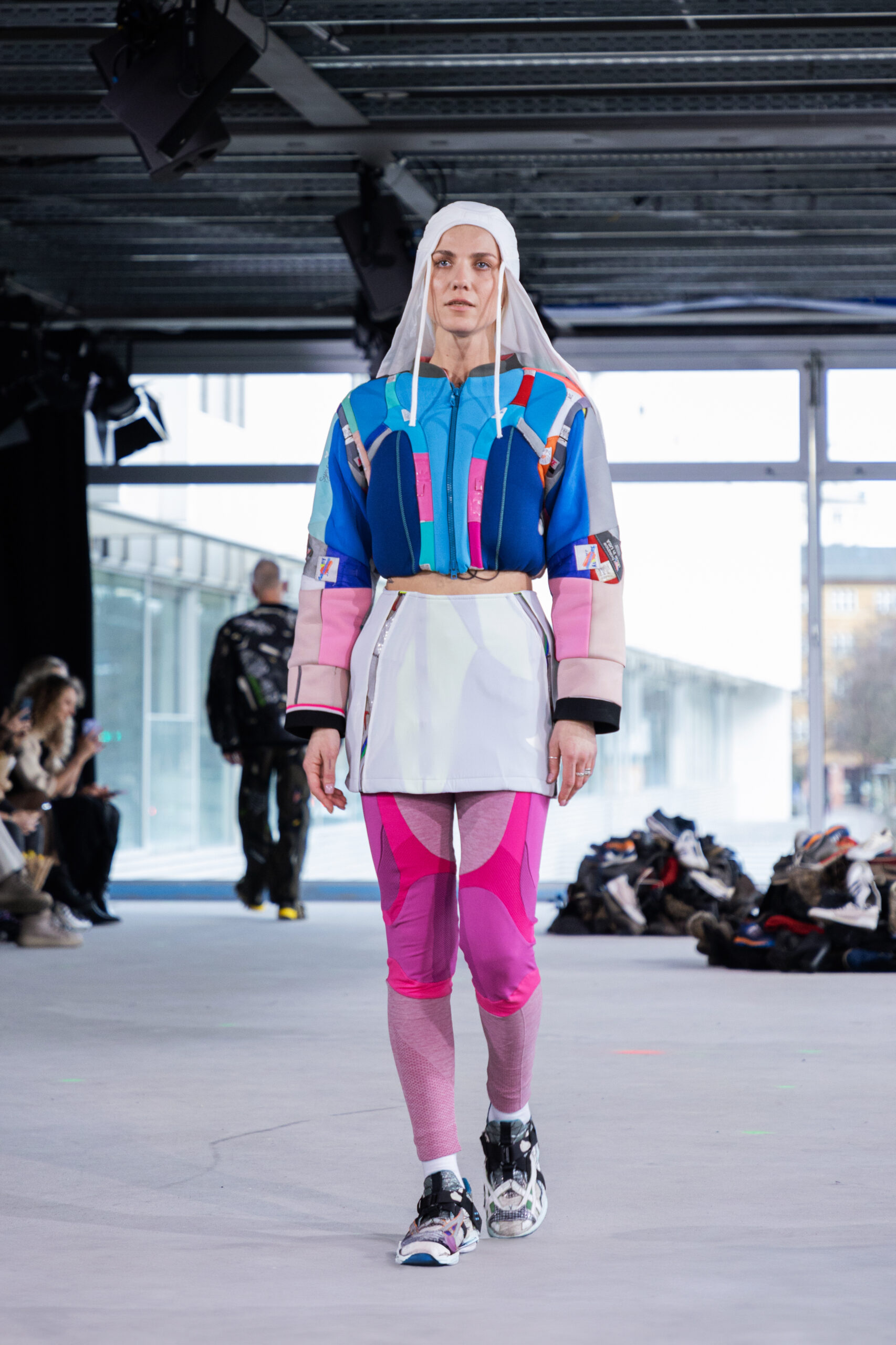 Elastic, lightweight panels extracted from repurposed diving gear for enhanced comfort and movement. -